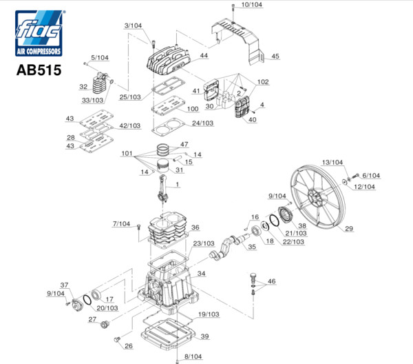 Запасные части к компрессорам на головке Fiac AB 515 (выпуск после 12.2012)
